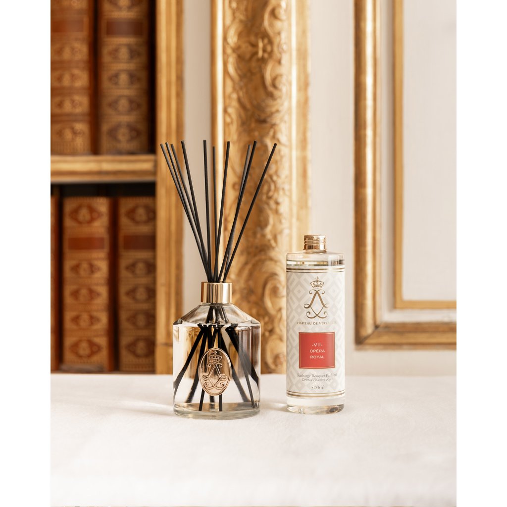 Královská opera byla domovem úchvatných hudebních kreací, působivých slavností, plesů a svědkem nejkrásnějších divadelních a operních představení, které francouzský král tolik miloval. Na oslavu největšího evropského koncertního sálu tehdejší doby vznikl interiérový parfém Opéra Royal, ve kterém hřejivé až opulentní tóny kadidla a pikantního guajakového dřeva odhalují netušenou architekturu místa, zatímco med se skořicí a nasládlou vanilkou evokuje nádheru a bohatost dřevěného dekoru. Červené ovoce pak propůjčuje vůni svůj radostný nádech připomínající živou a veselou atmosféru panující v opeře.