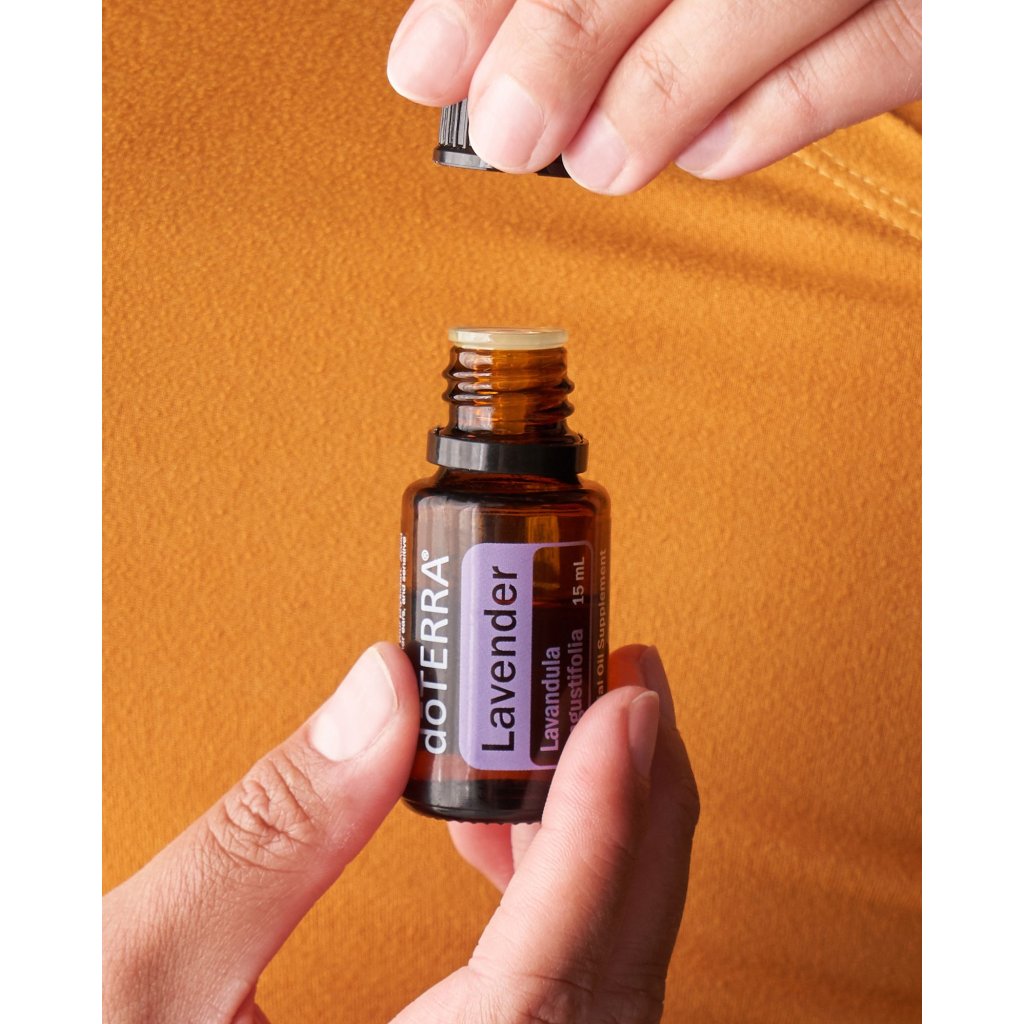 Levandulový esenciální olej se používá po tisíciletí a patří mezi nejpopulárnější a nejrozšířenější esence. Levandule je ceněna pro svou nezaměnitelnou nasládlou vůni s jemným pudrovým nádechem a nesčetné výhody. Zklidňuje nervové napětí, působí proti stresu a nespavosti, snižuje krevní tlak, přispívá k hluboké relaxaci a pomáhá navodit zdravý spánek. Levandule má blahodárné účinky proti bolesti hlavy a migréně, působí dezinfekčně, antibakteriálně, regeneruje pokožku a je vhodná na popáleniny a rány všeobecně. Má také vynikající repelentní účinky. Je to tzv. „švýcarský nůž mezi esenciálními oleji“, jde tedy o nezbytný olej, který byste měli mít neustále po ruce. Existuje více druhů levandulového oleje, které jsou získávány z různých odrůd. Chemotyp rostliny s botanickým názvem Lavandula angustifolia je čistější, a proto dražší, ale má mnohem více užitečných vlastnosti pro osobní i zdravotní péči. Levandulový esenciální olej doTERRA se extrahuje destilací vodní parou z květů a listů pěstovaných ve Francii (ve středně vysokých oblastech) a Bulharsku (ve vysokých nadmořských výškách) rovným dílem. Obsahuje linalool, linalyl acetát a ocimene. Při aplikaci na pokožku je důležité esenciální olej vždy zředit vhodným za studena lisovaným rostlinným olejem a před aplikací je nutné provést test snášenlivosti na předloktí.