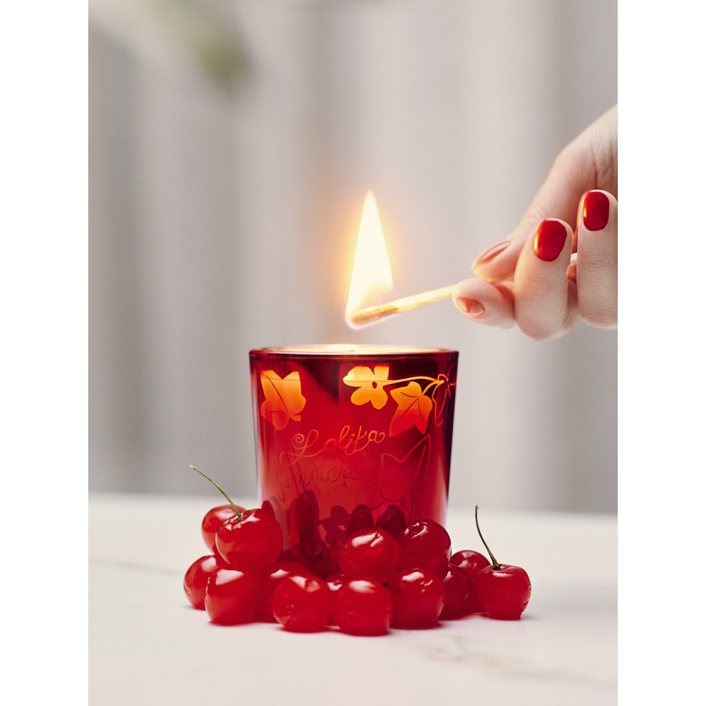 Luxusní svíčka francouzského výrobce Maison Berger Paris příjemně provoní interiér a upoutá jako výrazný doplněk. Intenzivně červené sklo zdobí ikonické motivy břečťanových listů, kvítky a logo Lolita Lempicka, které propouští jemné světlo plamínku a vytváří útulnou a sofistikovanou atmosféru. Rostlinný vosk zajišťuje čisté hoření a přirozenou vůni až 40 hodin. Sladce ovocná vůně věhlasné návrhářky Lolity Lempické zahalí interiér do uklidňujícího aroma třešní.