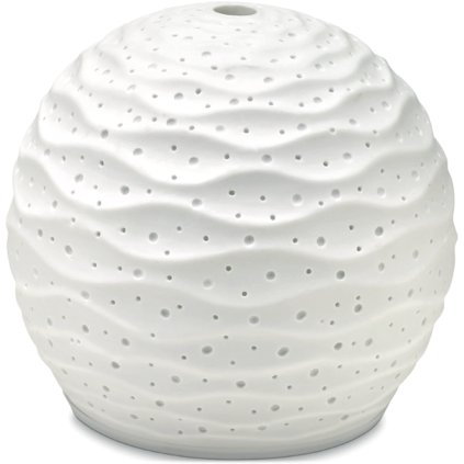Evaporační difuzér Laurus s motivy vavřínových listů rozptyluje esenciální oleje do prostoru bez přidání vody a pouze působením tepla žárovky. Je bezpečný i v přítomnosti dětí či domácích mazlíčků a ideální do kanceláře nebo míst, kde nechcete používat oheň či hrozí rozlití. Elegantní provedení z keramiky včetně odnímatelné nádoby pro snadné čištění z něj dělá stylový doplněk, který spolu s vůní a tlumeným světlem navodí příjemnou atmosféru.
