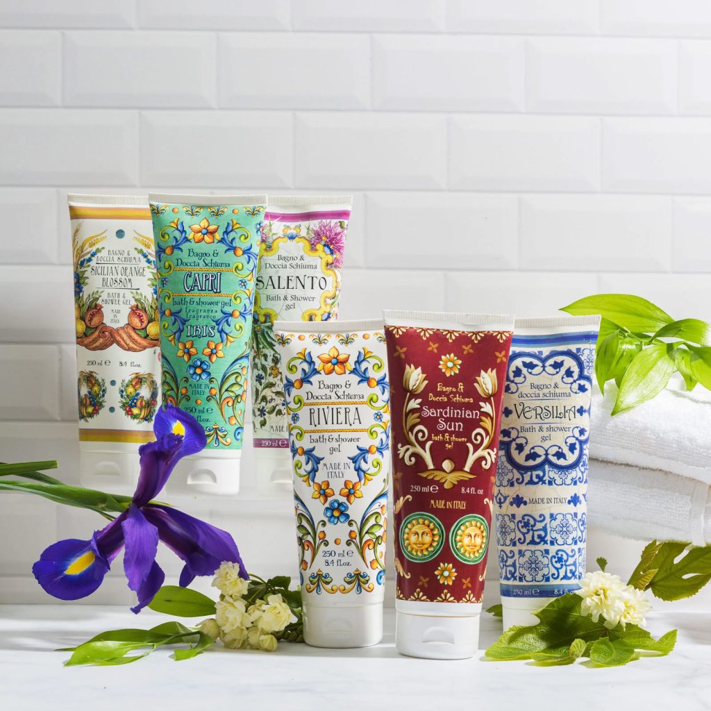 Italský krémový sprchový gel a pěna do koupele z unikátní kolekce Maioliche s extra bohatou a voňavou recepturou. Pečlivě zvolené ingredience s aktivními látkami z aloe vera a mandlového oleje poskytnou pokožce luxusní péči a zanechají ji příjemně hydratovanou, vláčnou a voňavou. Vyberte si domácí balení v dóze s dávkovačem (700 ml) nebo cestovní tubu (250 ml) a použijte jako pěnu do koupele nebo sprchový gel přímo na tělo.