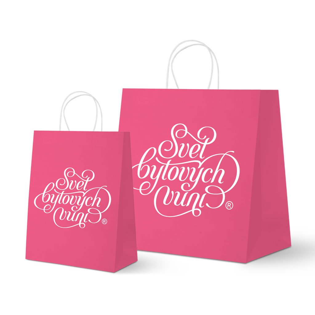 Velká papírová taška s logem Svět bytových vůní má ideální rozměr pro elektrický aroma difuzér, aroma difuzér s tyčinkami, dárkovou sadu a další velké vonné produkty nebo prostě velký nákup.