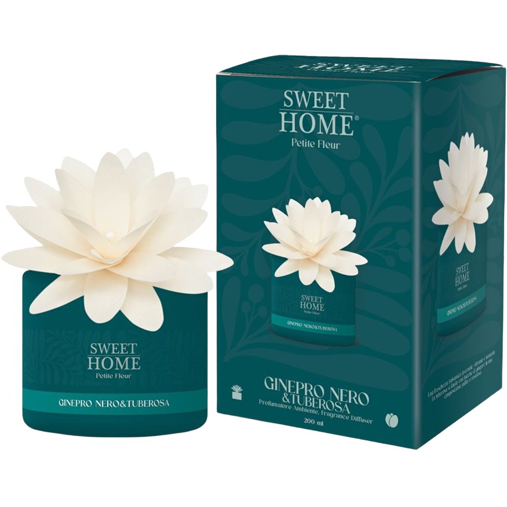 Sweet Home – difuzér s vonící dřevěnou květinou Černý jalovec a tuberóza, 200 ml