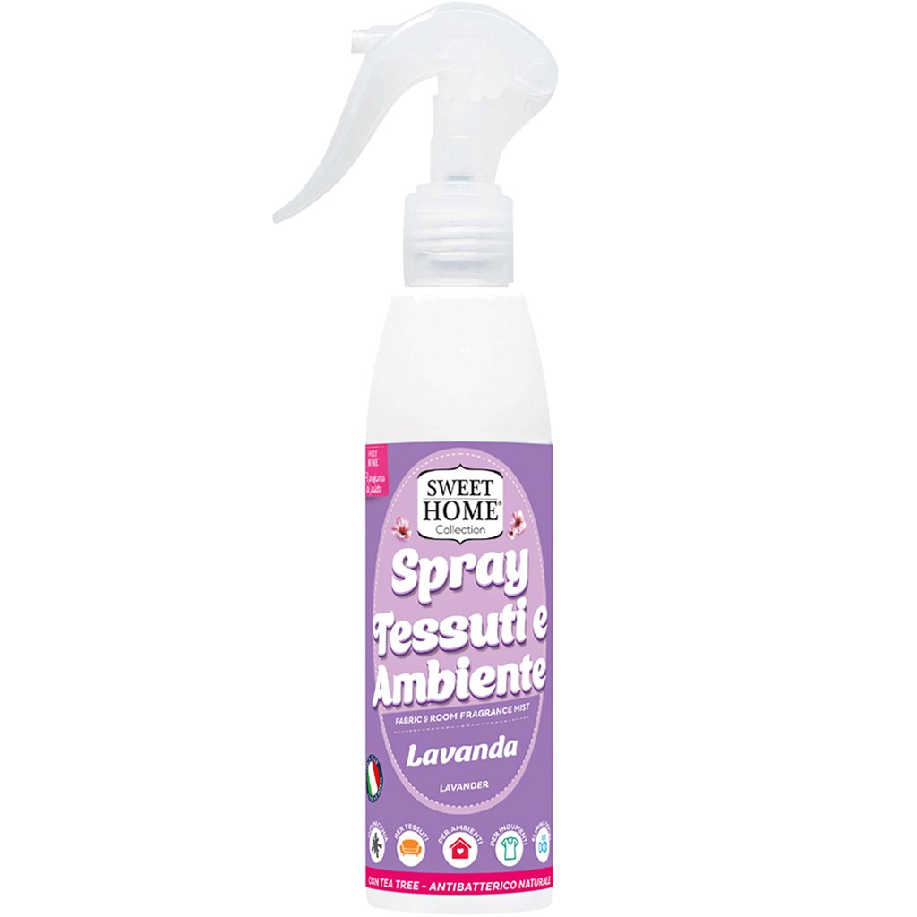 Italský osvěžovač Sweet Home je určen k rychlému provonění a pohlcení pachů z oblečení a prádla, bytového textilu, koberců, zavazadel, obuvi či interiéru auta. Nezanechává skvrny a aplikuje se rozprašovačem přímo na textil nebo do prostoru.