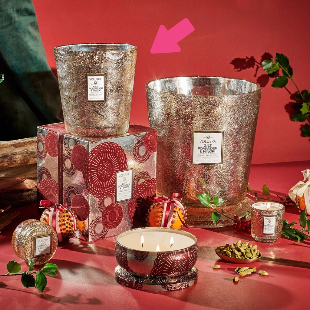 Královna vánočních vůní, která se dotkne vašeho srdce a vyvolá ty nejkrásnější vzpomínky. Prožijte svátky v hřejivém objetí kardamomu, pomerančů zdobených hřebíčkem, cesmíny, cedrového dřeva, zlaté ambry a vanilky s dotekem jehličí japonského cypřišku Hinoki. Světový bestseller Voluspa a nezapomenutelný voňavý zážitek, který umocní zlaté okamžiky sdílení s rodinou a přáteli.