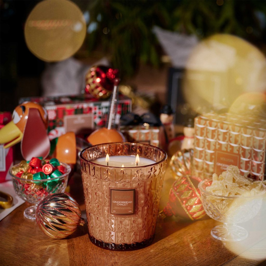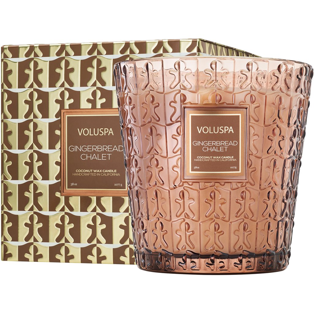 Luxusní svíčka Voluspa vytváří nádherně provoněnou atmosféru a v prostorných interiérech se vyjímá jako klenot. Sváteční skleněná nádoba s reliéfními motivy perníčků evokuje sladkou nostalgii Vánoc a zimních večerů. Krémově bílý kokosový vosk zachovává plné aroma a zajišťuje čisté hoření až 80 hodin. Extra velká svíčka 3 Wick Hearth Candle poskytuje díky 3 knotům a široké ploše vosku výrazné provonění a zároveň působivý světelný efekt. Po vyhoření lze skleněnou nádobu využít jako stylovou vázu.