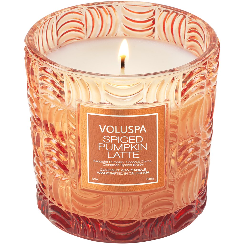 Luxusní svíčka Voluspa vytváří nádherně provoněnou atmosféru a v prostoru se vyjímá jako klenot. Sváteční skleněná nádoba zdobená reliéfními motivy připomínajícími žebrování dýně evokuje útulnou atmosféru podzimních dní. Krémově bílý kokosový vosk zachovává plné aroma a zajišťuje čisté hoření až 60 hodin. Svíčka Classic Candle je balena v atraktivní dárkové krabičce s ražbou, kterou je radost otevřít.