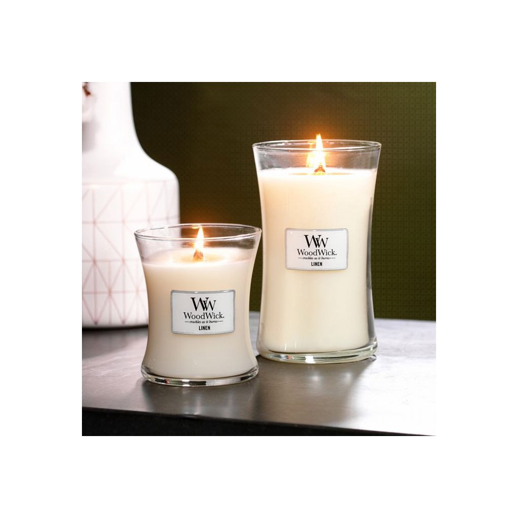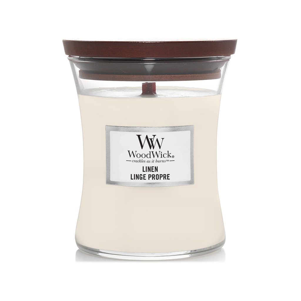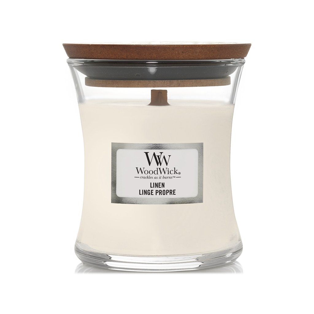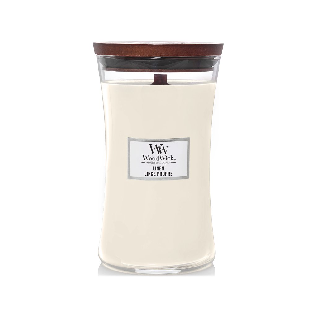 WoodWick – svíčka Linen (Čistý len)